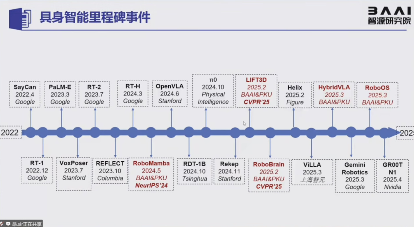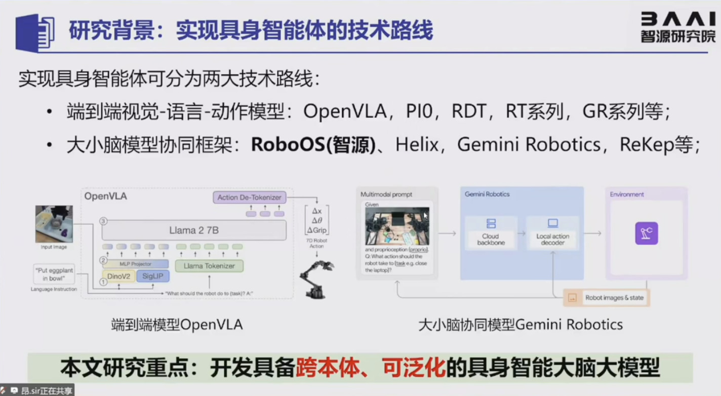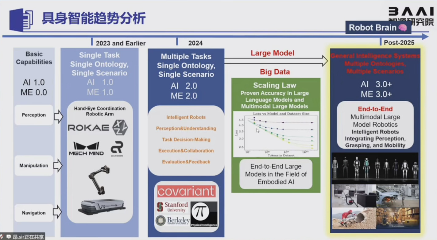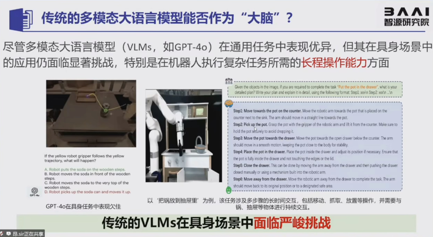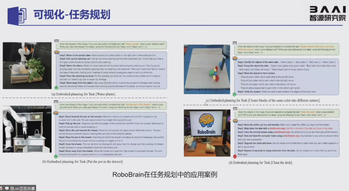 本文档介绍了RoboBrain,一个由智源人工智能研究院开发的具身多模态大模型。它详细阐述了具身人工智能的发展趋势,并强调了大型模型在复杂长期操作任务中的重要性。文件中解释了任务规划、可操作区域感知和轨迹预测是RoboBrain实现端到端具身智能的关键能力。此外,它还介绍了用于训练RoboBrain的ShareRobot数据集,以及模型训练策略和实验结果,展示了RoboBrain在各项基准测试中超越现有模型的表现。
