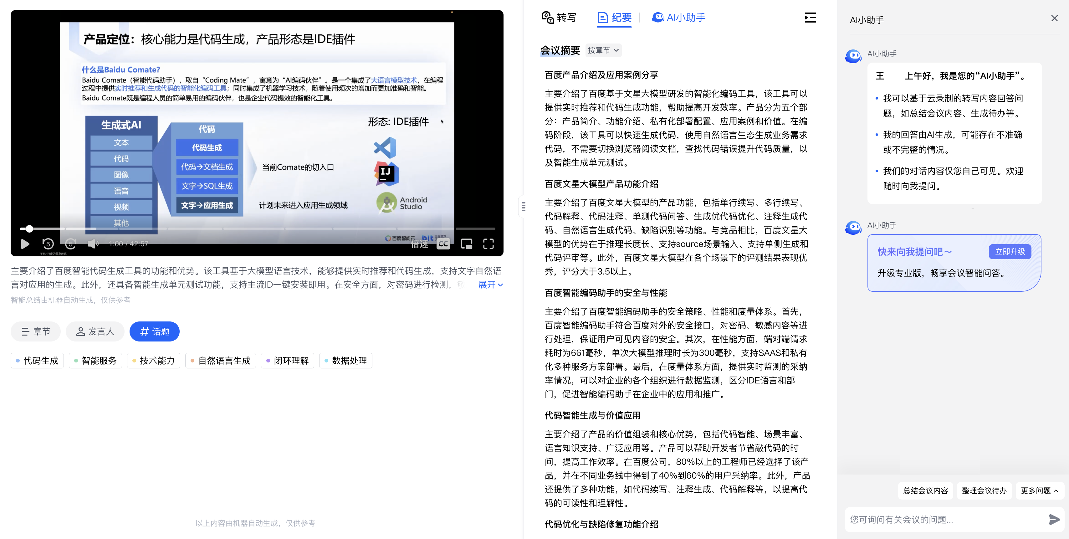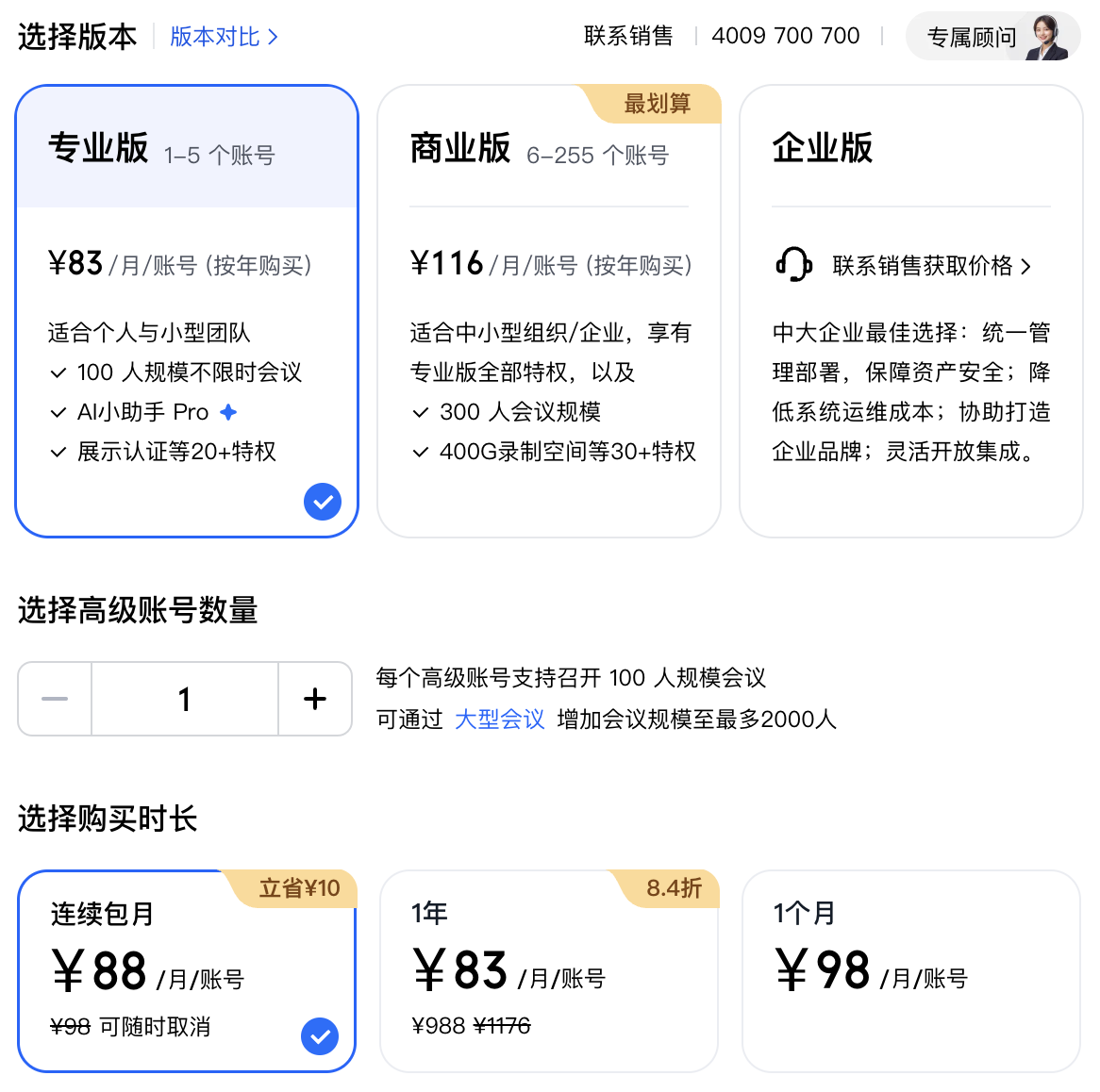 这个AI小助手价格太贵了,可能对于中大型企业用户有一定吸引力,没有多少录制视频的用户基本不用考虑,上面的功能已经足够了。