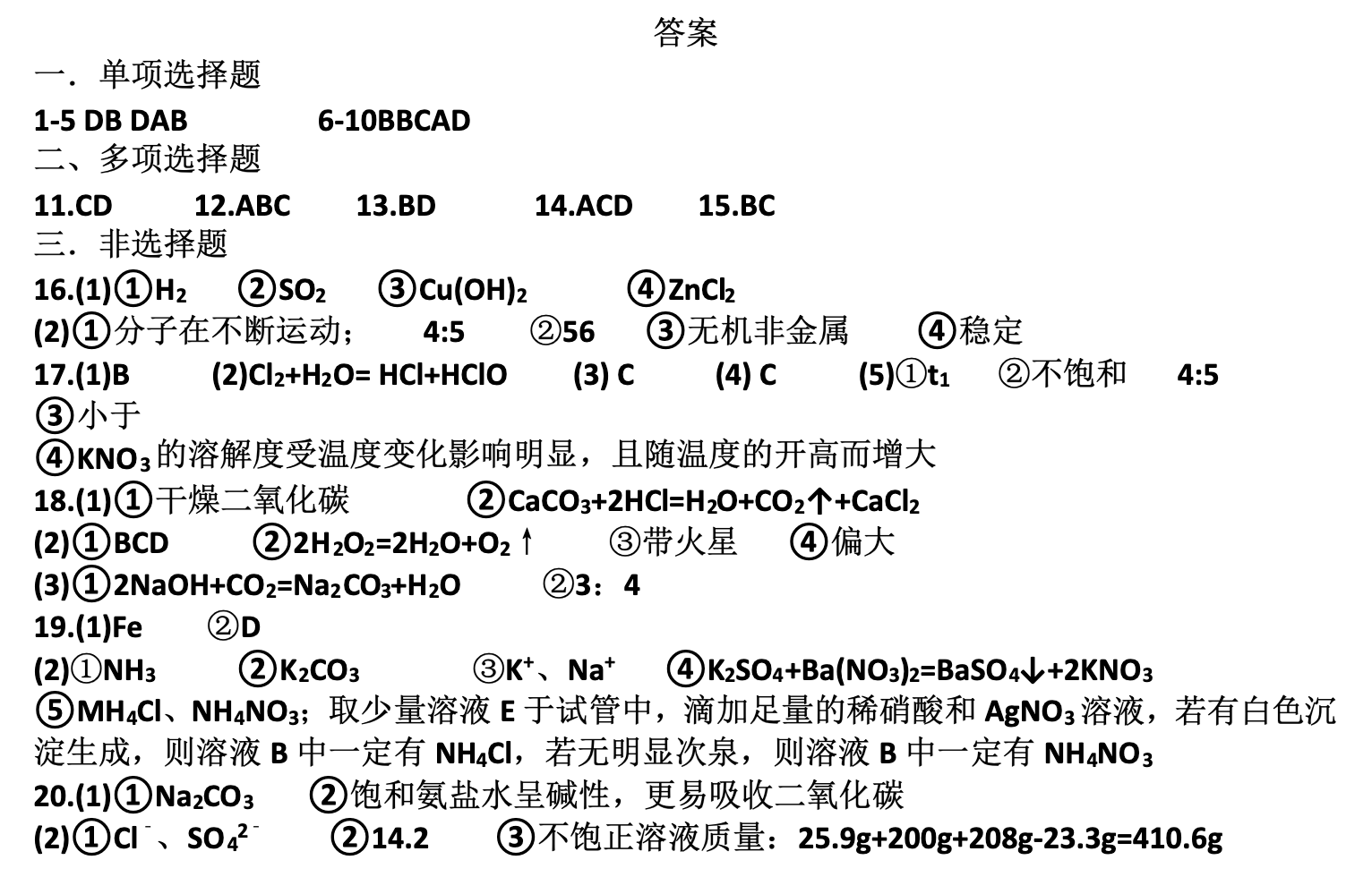 16.(1)①H2 ②SO2 ③Cu(OH)2 ④ZnCl2
