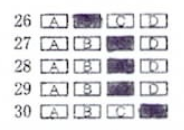 图像中用户填涂的选项是 'A', 'B', 'C', 'D'。