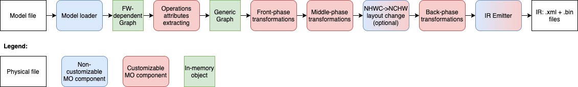 运行模型优化器,并将模型转换为中间表示 (IR),该中间表示以一对文件(.xml 和 .bin)表示。这些文件描述了网络拓扑,并包含权重和偏差模型的二进制数据。