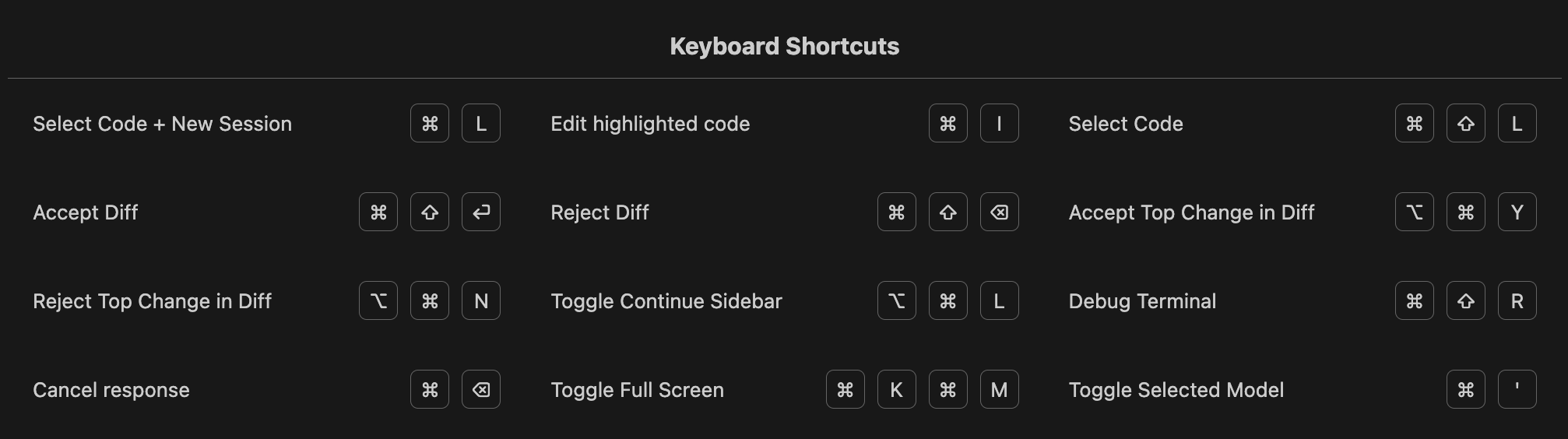 | 重构您正在编码的函数 | Cmd+I | Cmd+I | Ctrl+I | Ctrl+I |