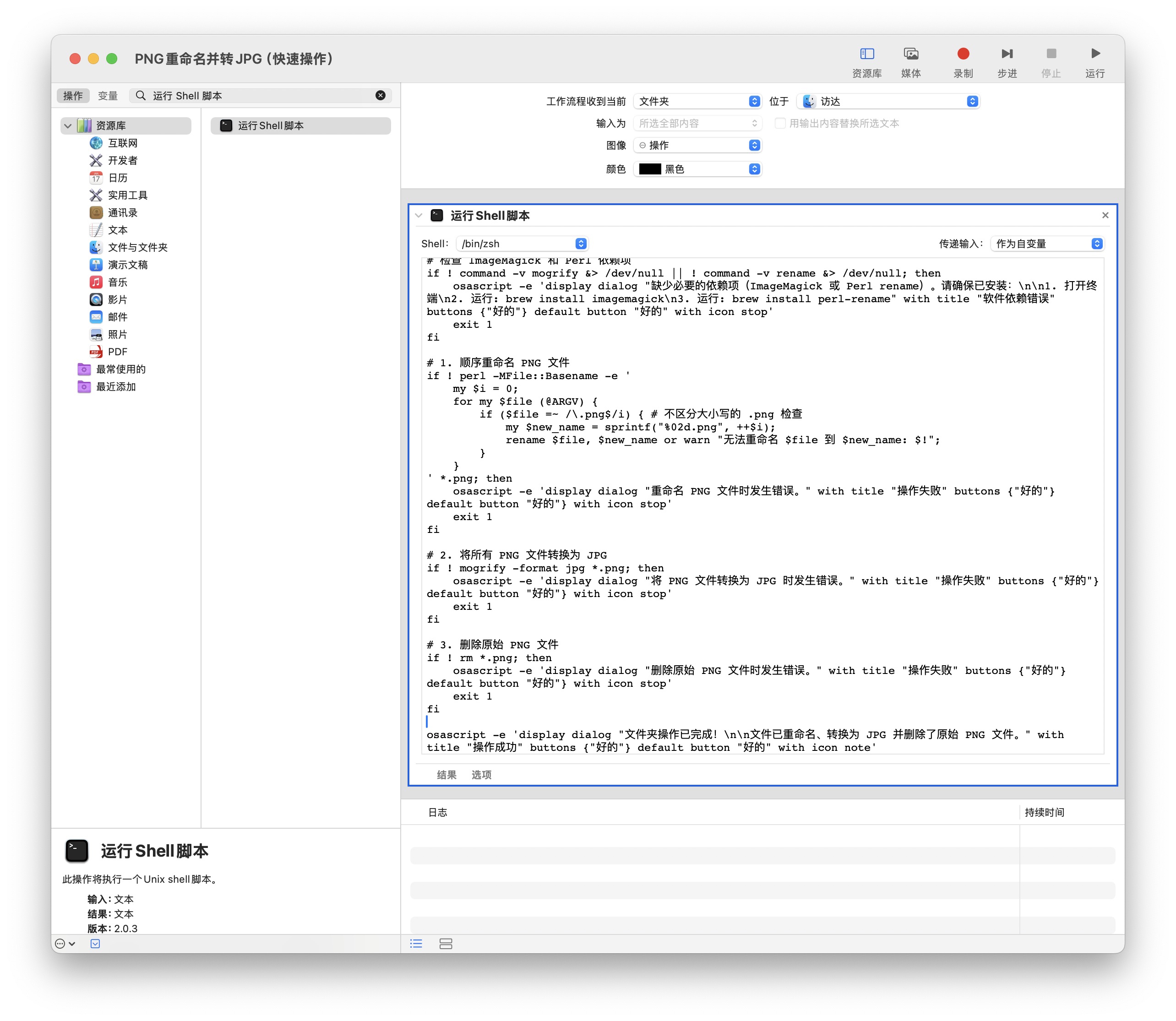 Automator 开发 “PNG重命名并转JPG” 快速操作