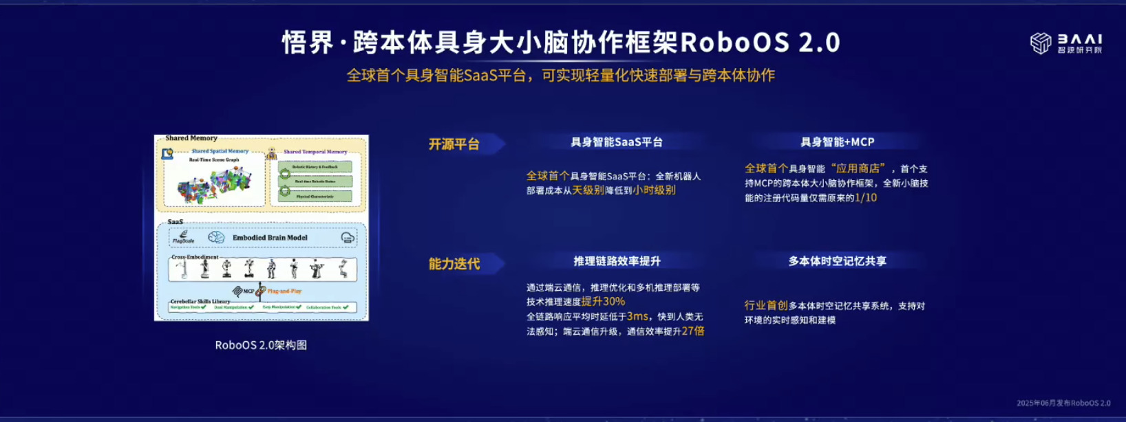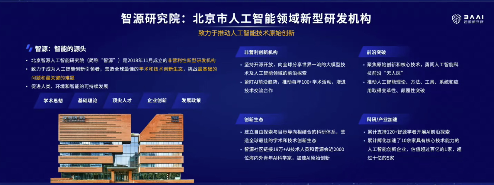 本文档概述了北京智源人工智能研究院 (BAAI),一个致力于推动人工智能原始创新的新型研发机构。它详细介绍了 BAAI 的发展历程,从2018年成立至今,以及其在大型人工智能模型领域取得的重大进展,包括推出 FlagOpen 开放平台。此外,来源还介绍了 BAAI 在具身智能和生命科学等前沿领域的具体研究成果,例如 RoboOS 2.0 和 OpenComplex2。整体而言,这份资料展现了 BAAI 在构建通用人工智能、推动开放生态以及解决现实世界问题方面的努力和愿景。