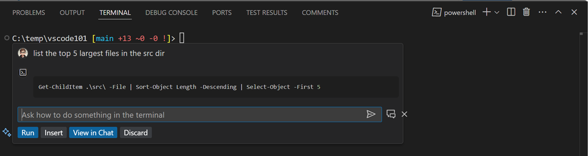 @terminal- 询问如何在终端中执行某项操作/explain- 解释终端中的内容