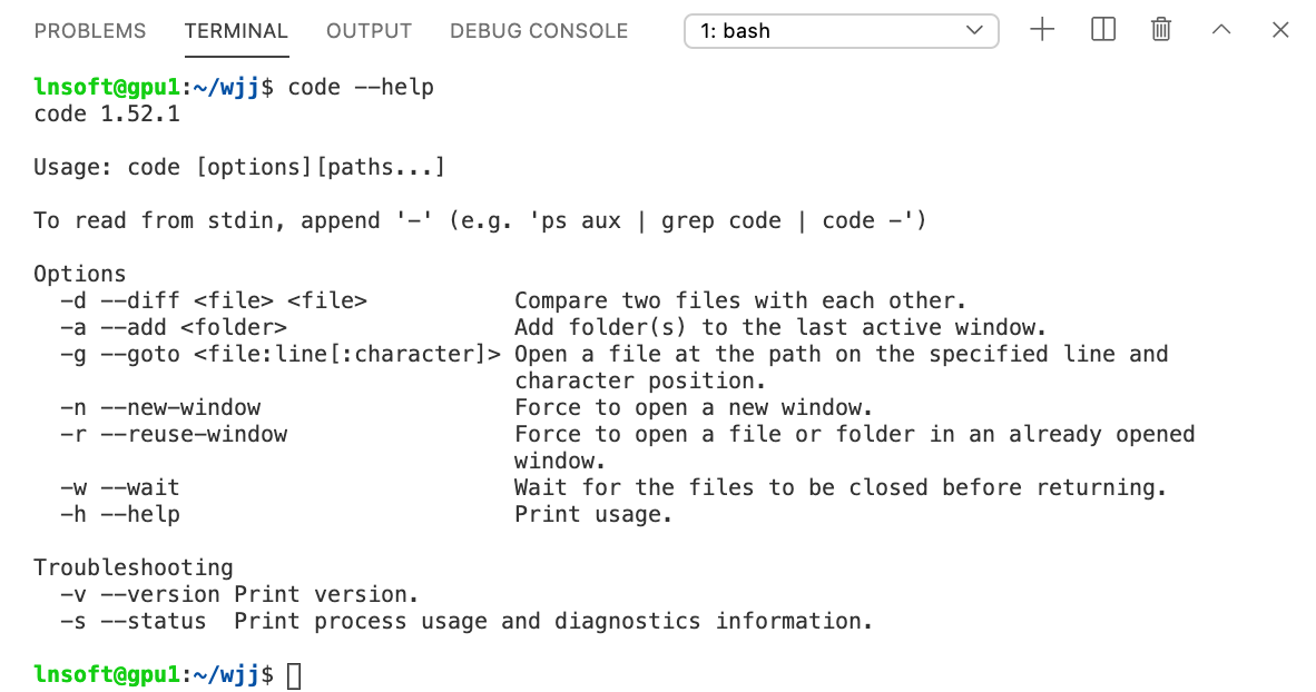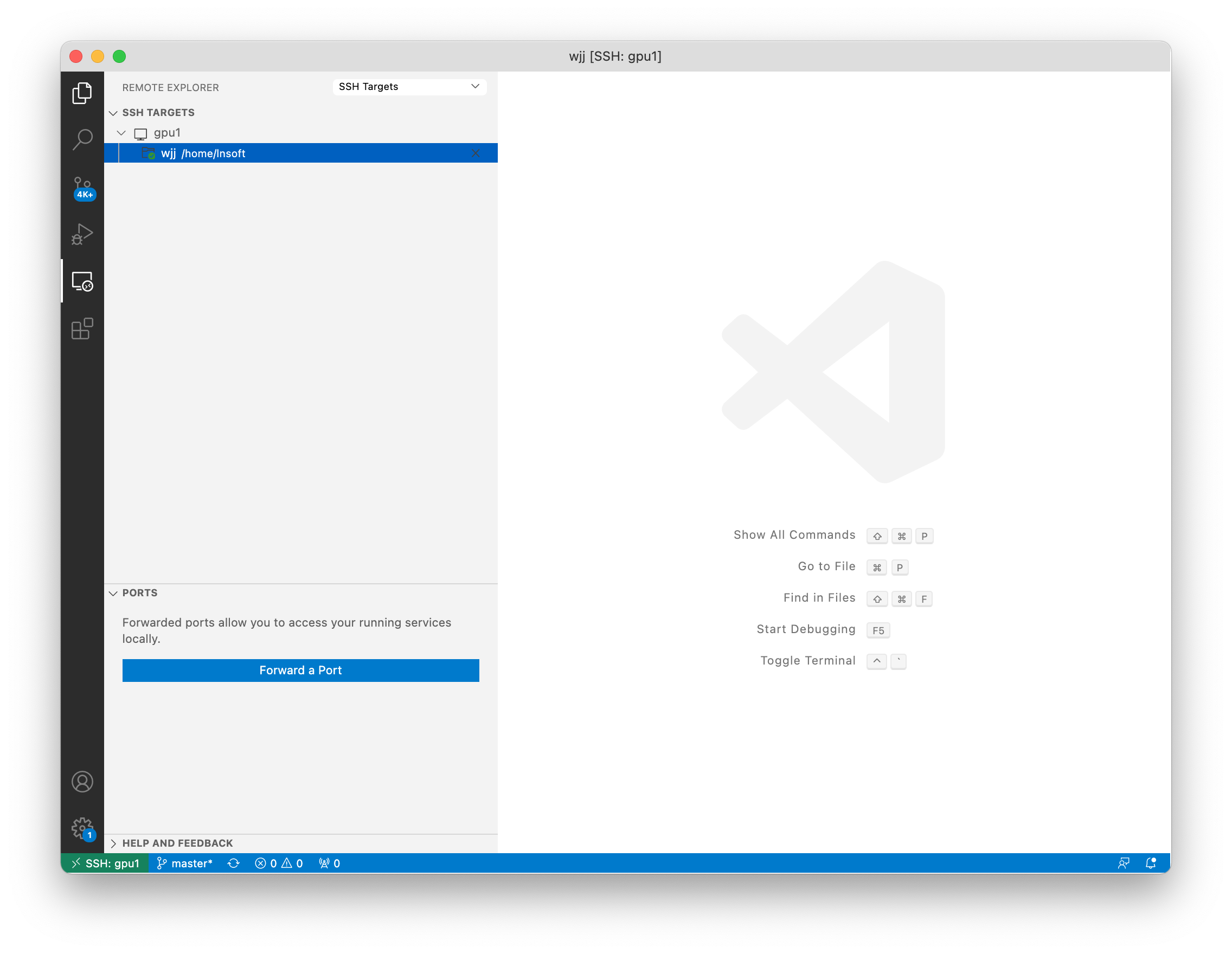 在VS Code中, 按F1,选择Remote-SSH: Connect to Host…输入user@hostname。