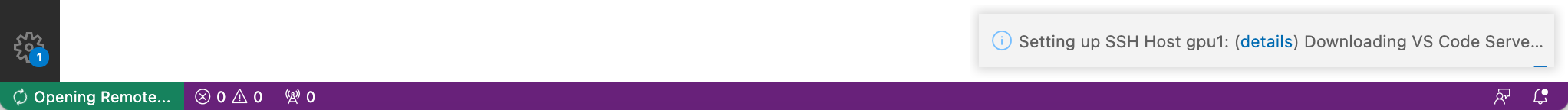 VS Code将连接到SSH服务器并进行设置。 VS Code将使用进度通知使您保持最新状态。