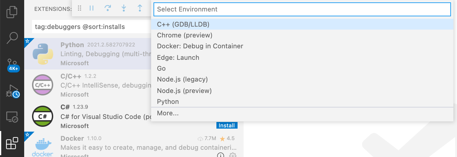 在Extensions窗口中选择要在远程主机上安装的调试器,按F5。