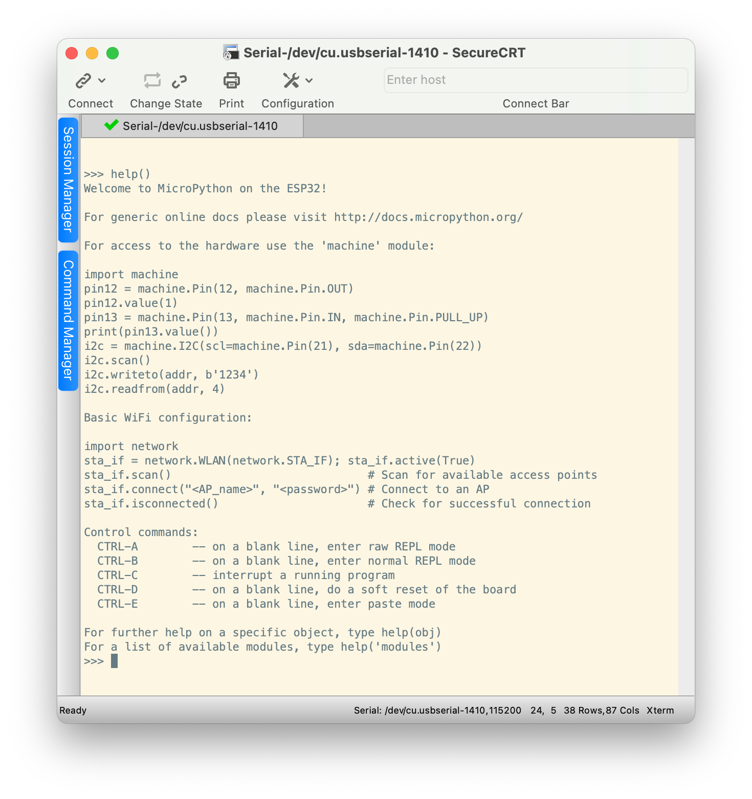 esptool.py --chip esp32 --port /dev/cu.usbserial-1410 --baud 460800 write_flash -z 0x1000 esp32-idf3-20210202-v1.14.bin