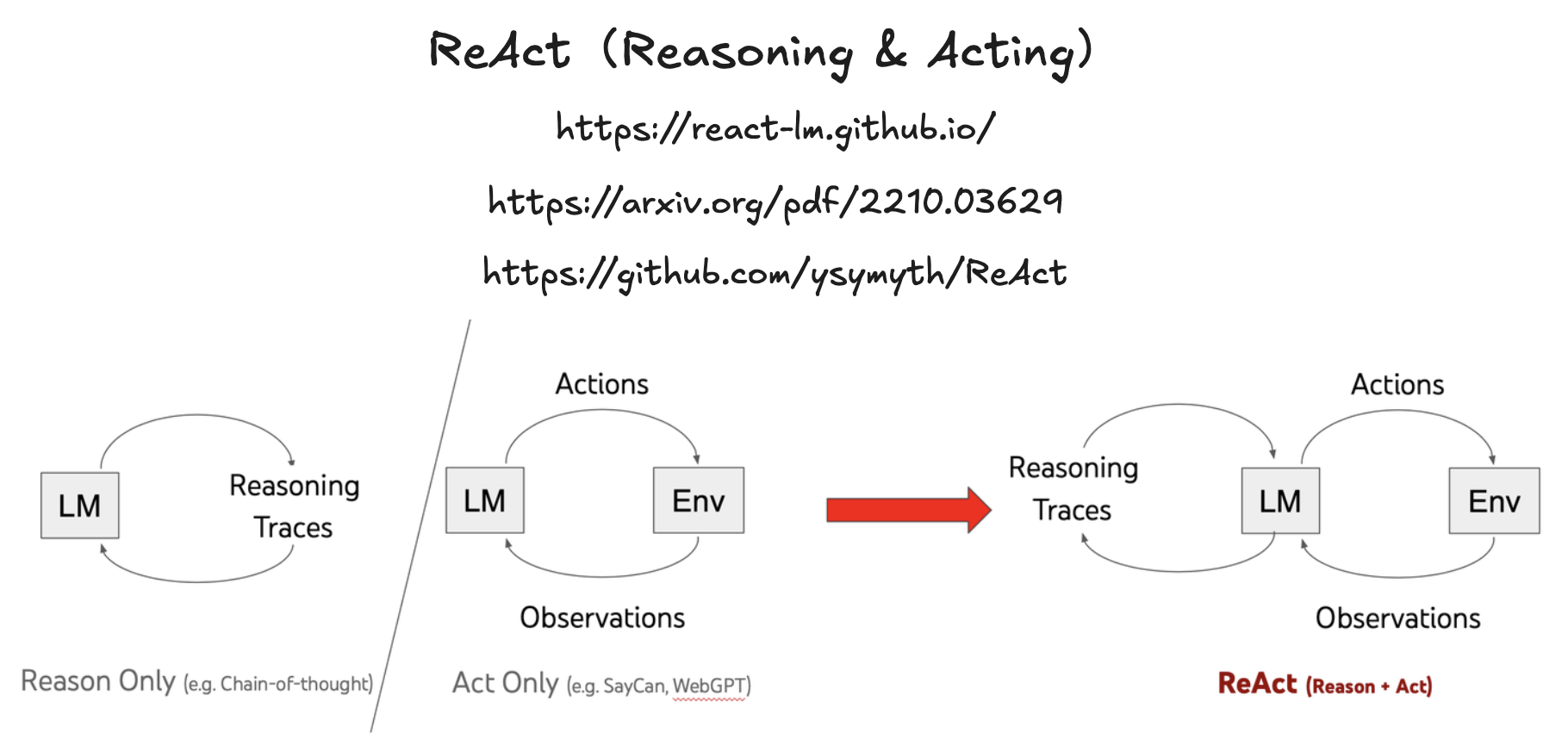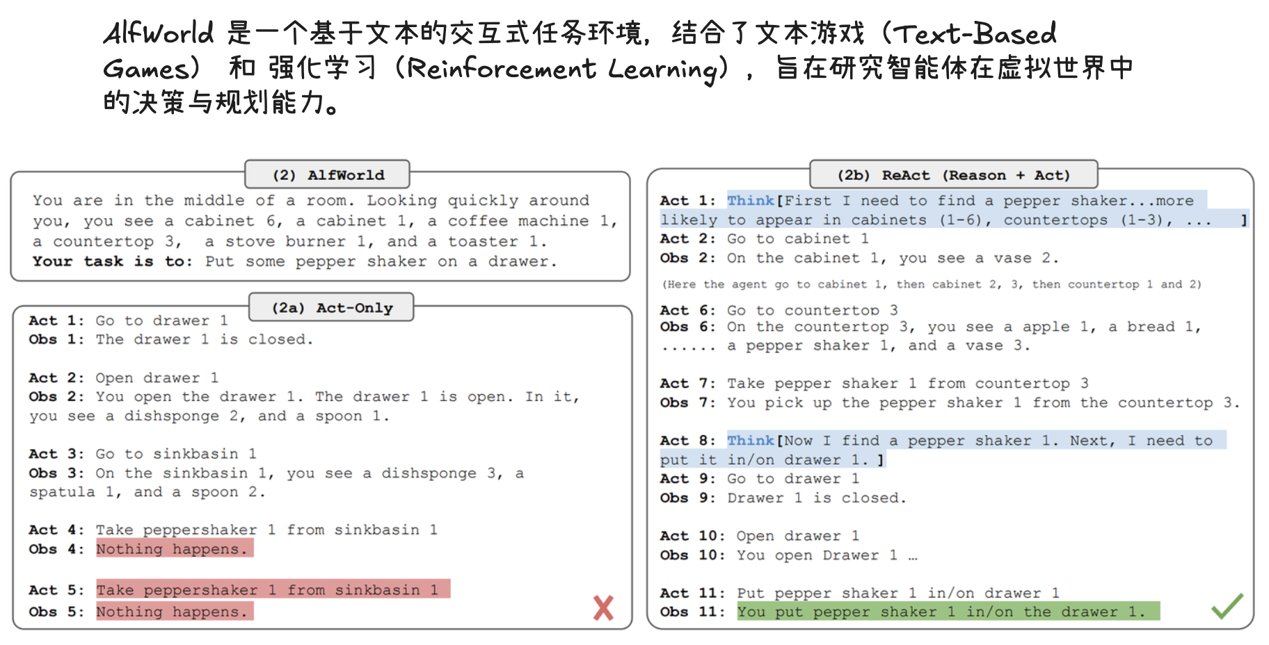 - ReAct: 让模型边“想”边“做”,结合推理和外部工具交互。