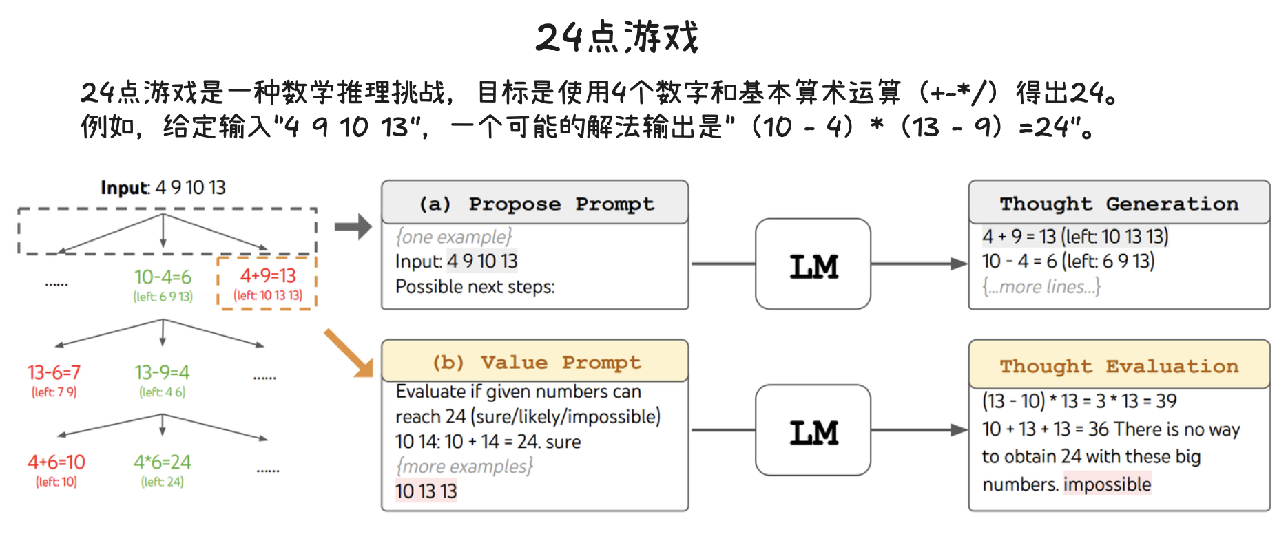 - 解决更复杂、探索性更强的问题: 对于没有明确单一解法路径的问题(如下棋、一些规划或创造性任务),ToT 可以探索多种可能性。