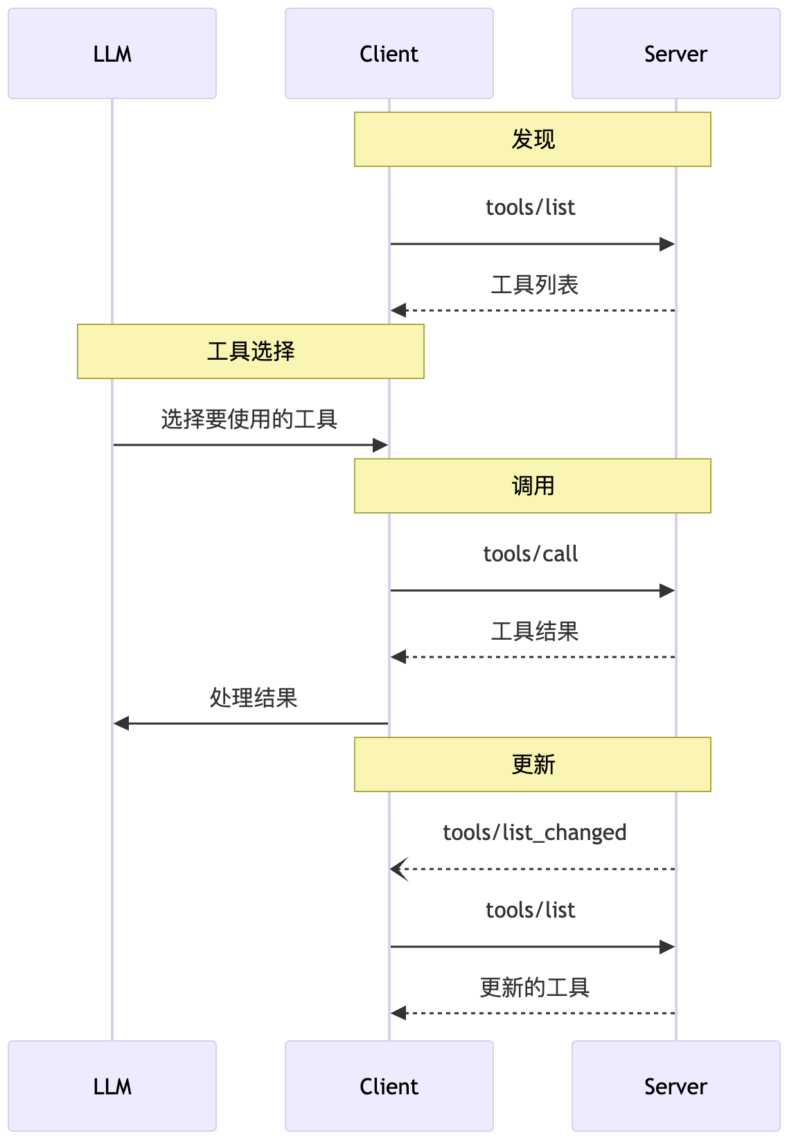 为了发现可用的工具,客户端发送tools/list请求。此操作支持分页。