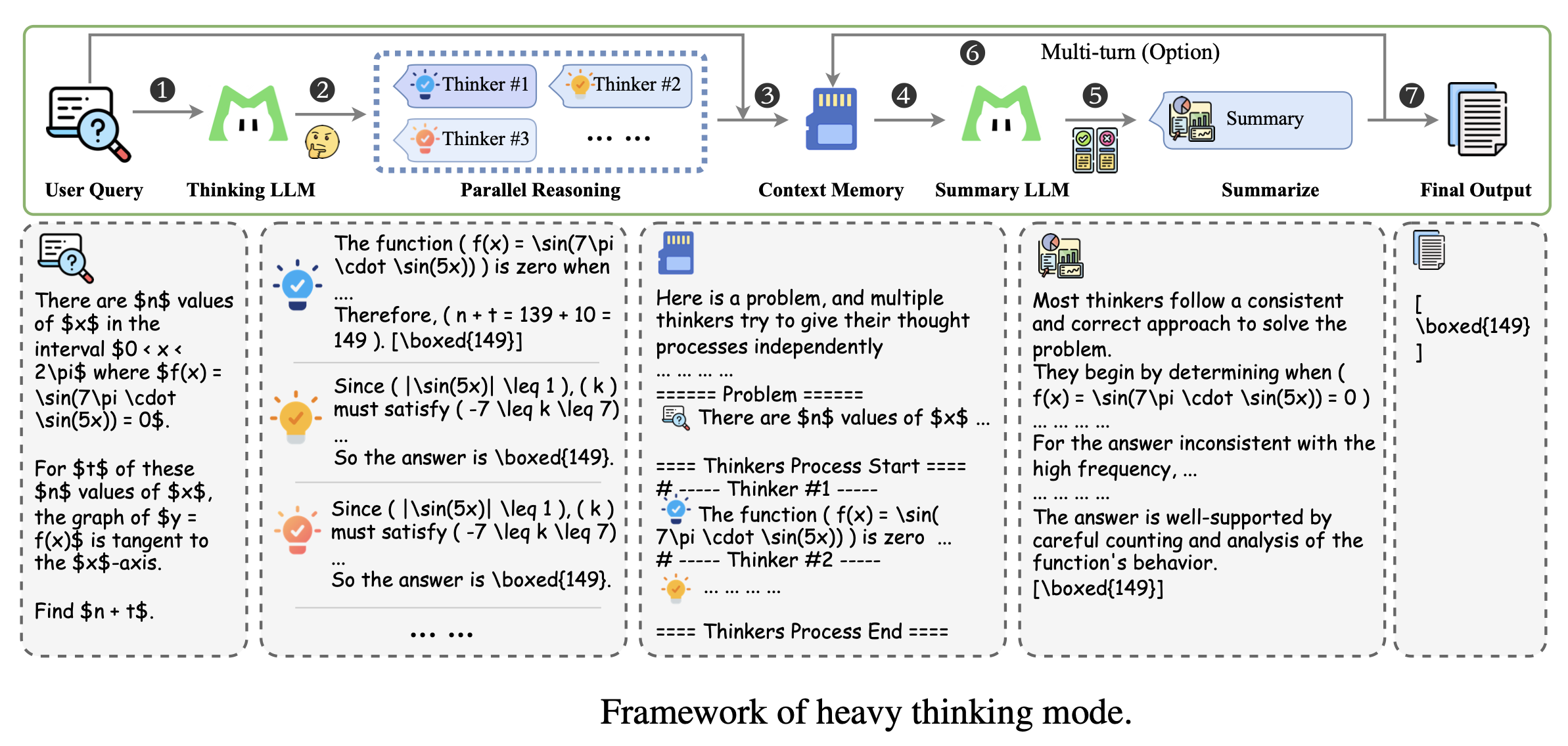 - 总结模型随后进行反思性推理,聚合或提炼出最终的总结答案(Sum. Answer)。