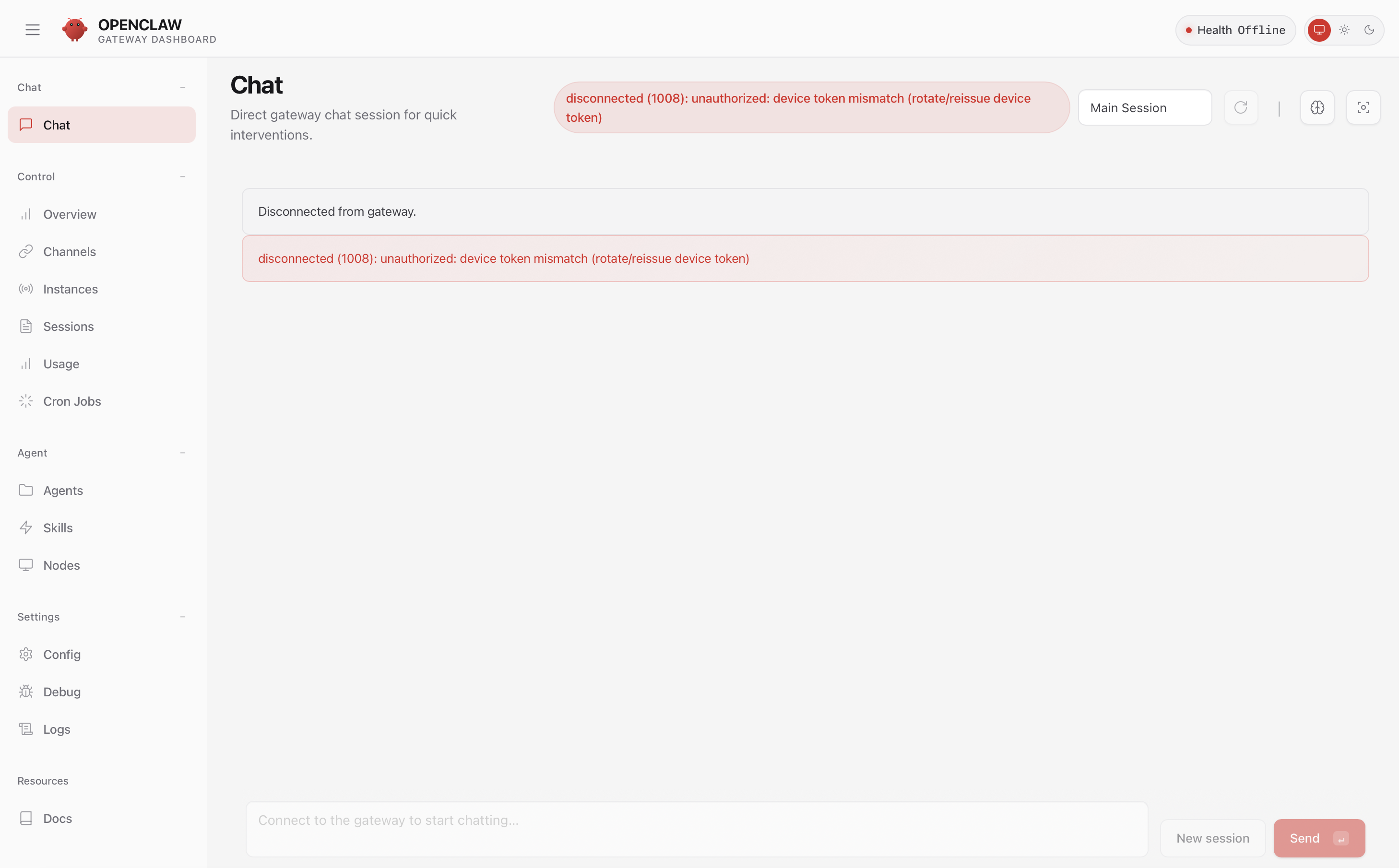 disconnected (1008): unauthorized: device token mismatch
