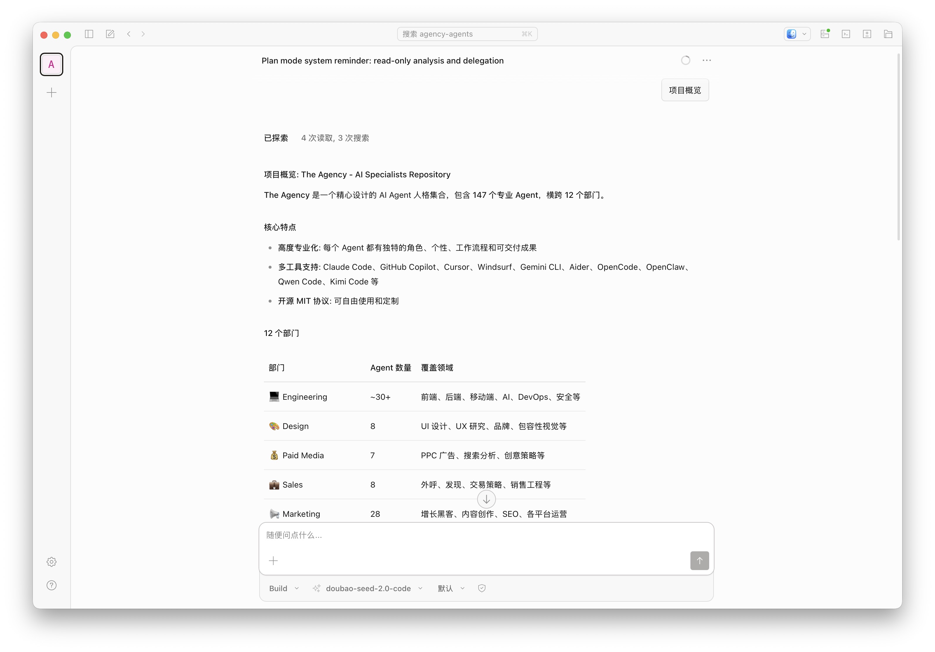 agency-agents 是 GitHub 上一个开源项目,打造了拥有 144 个分属 12 大业务板块的专业化 AI 智能体体系,每个智能体均具备专属性格、专业流程和可落地交付成果,支持 Claude Code、OpenCode 等多款工具集成,能为各类工作流提供定制化的 AI 专家协作能力。