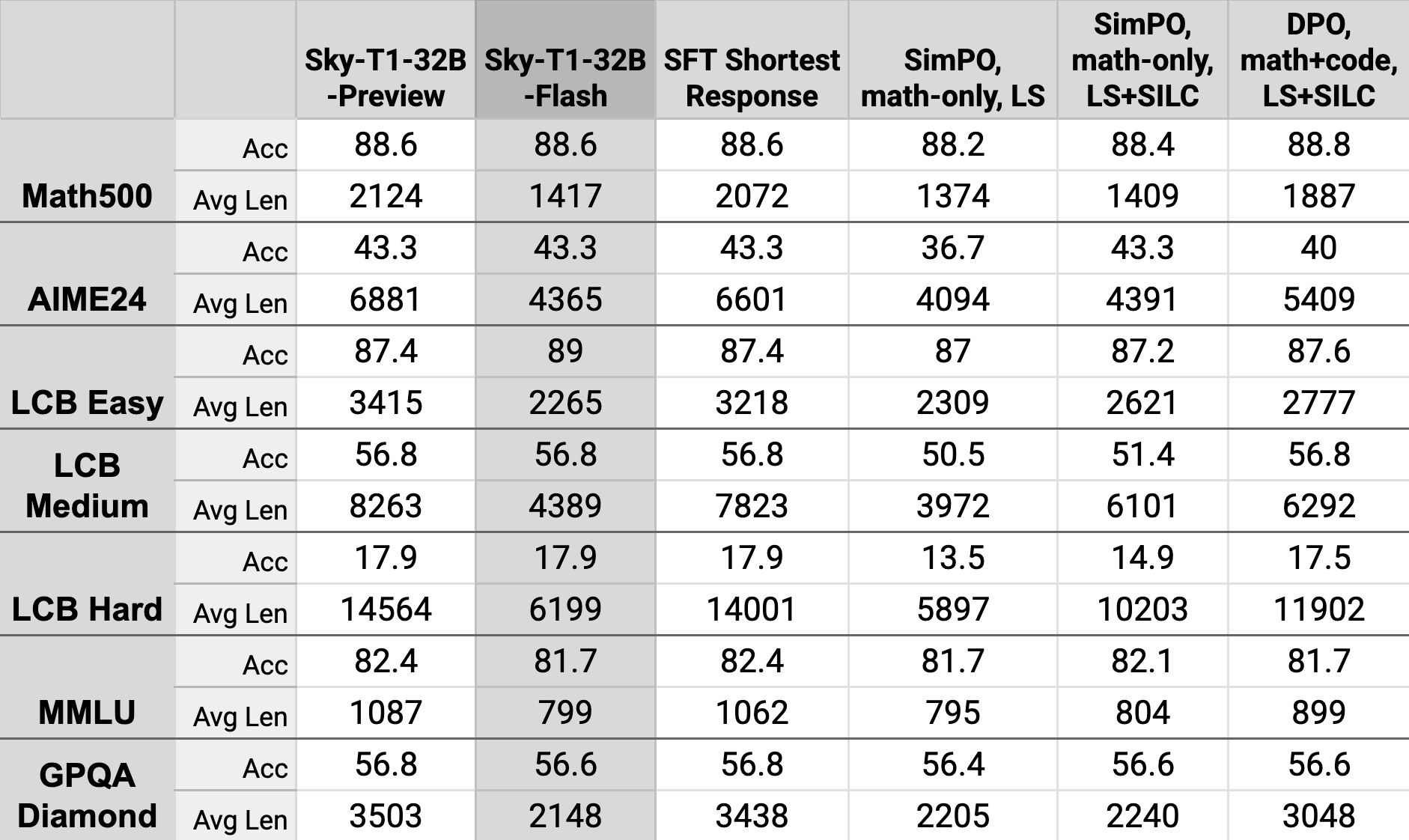 我们推出 Sky-T1-32B-Flash,这是一个可以将生成长度减少高达 50% 但保持准确性的推理模型。