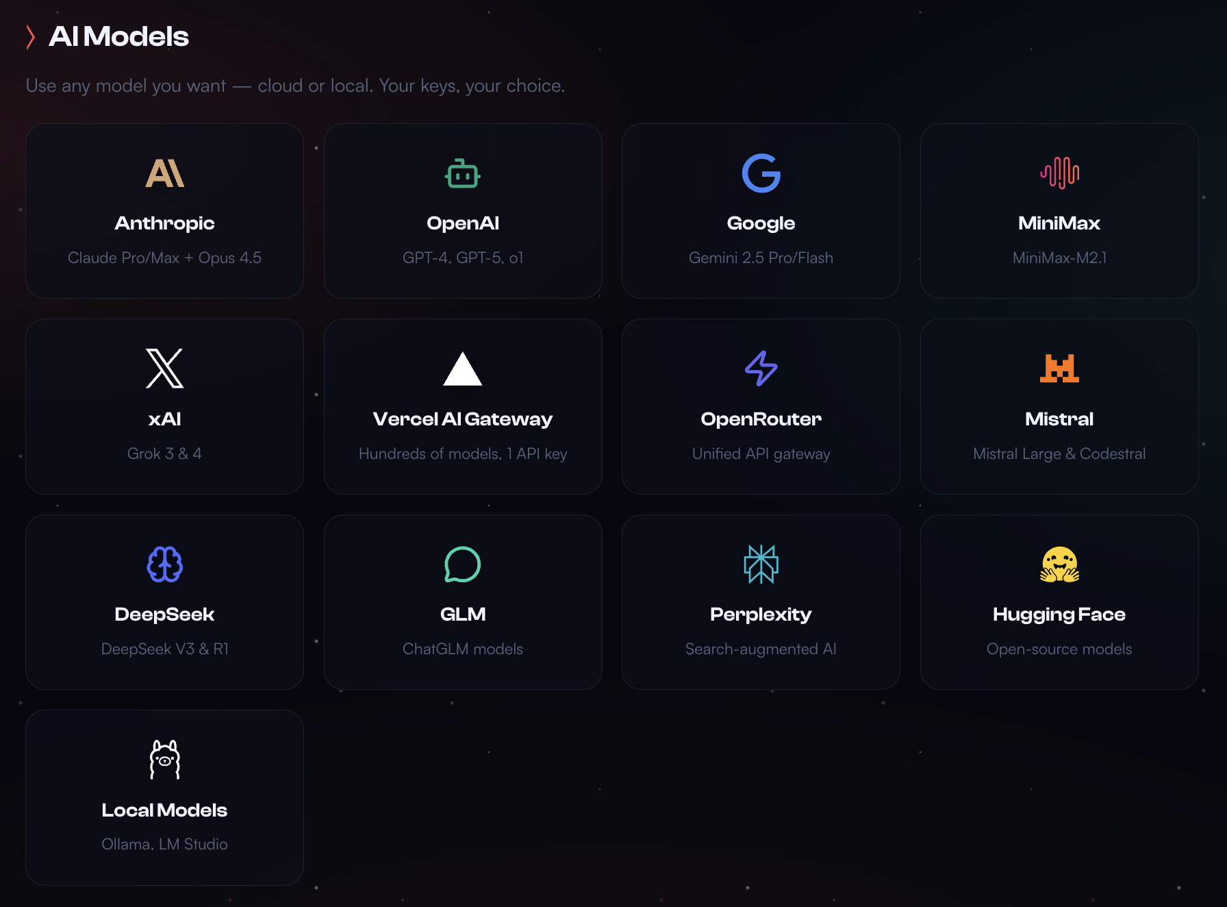 - 运行在本地(支持 Windows, Linux, macOS, iOS, Android, Docker 等)。