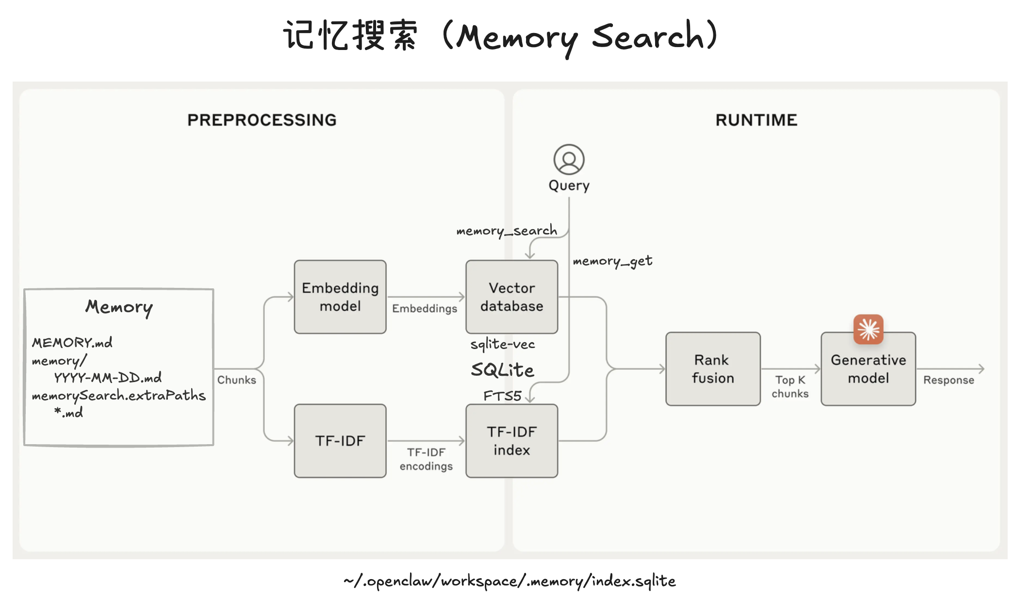 MEMORY.md) 和“每日原始日志” (memory/YYYY-MM-DD.md)。这模仿了人类记忆机制(短期细节 vs 长期经验)。 - 用户画像: